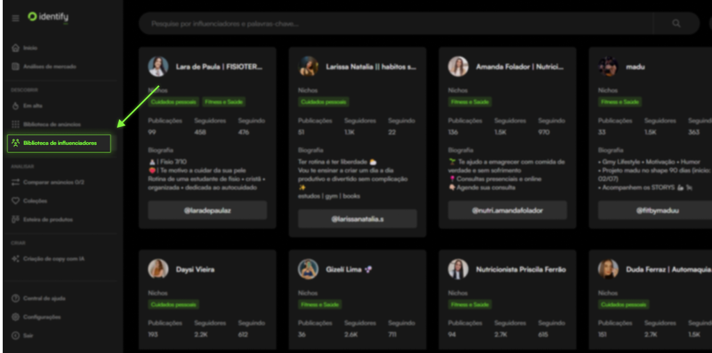 Para ter acesso, basta garantir o plano premium e clicar na aba “Biblioteca de Influencers”, na página principal.